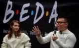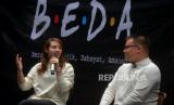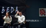 Co-Chair B.E.D.A Tsamara Amany dan Pangeran Siahaan bersiap memberikan keterangan pers di Jakarta, Rabu (18/1/2023). B.E.D.A yang merupakan sebuah gerakan anak muda yang mendorong berbagai inisiatif transformasi di masyarakat mendukung pencalonan Erick Thohir sebagai Ketua Umum PSSI Periode 2023-2027 untuk PSSI yang lebih baik. (FOTO : Republika/Prayogi.)
