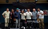 Co-Chair B.E.D.A Tsamara Amany (empat kiri) dan Pangeran Siahaan (tiga kanan) bersama para tokoh lainya berfoto usai memberikan keterangan pers di Jakarta, Rabu (18/1/2023). B.E.D.A yang merupakan sebuah gerakan anak muda yang mendorong berbagai inisiatif transformasi di masyarakat mendukung pencalonan Erick Thohir sebagai Ketua Umum PSSI Periode 2023-2027 untuk PSSI yang lebih baik. (FOTO : Republika/Prayogi.)