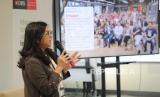 VP Internal Communication & CSR PT Bank DBS Indonesia Riany Agustina Warganegara berbicara kepada media saat penyerahan dana hibah DBS Foundation Grant (DBSF SE Grant) 2022 di Jakarta, Rabu (18/1/2023). DBS Foundation memberikan dana hibah sebesar tiga juta dolar Singapura kepada 15 wirausaha sosial (Social Enterprise/SE) dan delapan usaha kecil dan menengah (UKM/Small-and-Medium Enterprises/SME) di Asia guna menumbuhkembangkan bisnis mereka yang berupaya menghadirkan dampak positif, unik, dan inovatif dalam mengatasi tantangan sosial dan lingkungan. SukkhaCitta, wirausaha sosial di industri sustainable fashion yang memberdayakan serta menyejahterakan petani kapas perempuan di pelosok dan menjaga keseimbangan lingkungan, merupakan SE yang berhasil mewakili Indonesia untuk menerima dana hibah DBSF SE Grant tahun ini. Foto: Tahta Aidilla/Republika (FOTO : undefined)