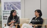 VP Internal Communication & CSR PT Bank DBS Indonesia Riany Agustina Warganegara (kiri), Founder & CEO SukkhaCitta Denica Riadini-Flesch berbicara kepada media usai penyerahan dana hibah DBS Foundation Grant (DBSF SE Grant) 2022 di Jakarta, Rabu (18/1/2023). DBS Foundation memberikan dana hibah sebesar tiga juta dolar Singapura kepada 15 wirausaha sosial (Social Enterprise/SE) dan delapan usaha kecil dan menengah (UKM/Small-and-Medium Enterprises/SME) di Asia guna menumbuhkembangkan bisnis mereka yang berupaya menghadirkan dampak positif, unik, dan inovatif dalam mengatasi tantangan sosial dan lingkungan. SukkhaCitta, wirausaha sosial di industri sustainable fashion yang memberdayakan serta menyejahterakan petani kapas perempuan di pelosok dan menjaga keseimbangan lingkungan, merupakan SE yang berhasil mewakili Indonesia untuk menerima dana hibah DBSF SE Grant tahun ini. Foto: Tahta Aidilla/Republika (FOTO : Tahta Aidila/ Republika)