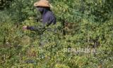 Petani memetik cabai rawit yang sudah matang di Cimenyan, Kabupaten Bandung, Rabu (18/1/2023). Meski harga cabai sedang tinggi, hasil penjualan hanya mampu menutup biaya produksi. Hal ini disebabkan karena pertumbuhan tanaman tidak maksimal akibat serangan hama penyakit dampak cuaca ektrem. Saat ini, harga cabai dari petani dijual dengan harga Rp 50 ribu per kilogram, dari normalnya Rp 25 ribu. (FOTO : Edi Yusuf/Republika)