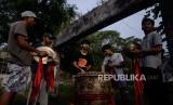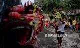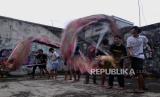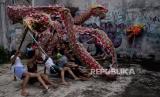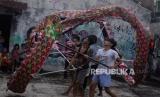 REPUBLIKA.CO.ID,BOGOR -- Pemain dari Kesenian Naga Merah Putih saat berlatih di kawasan Babakan Pasar, Kota Bogor, Jawa Barat, Rabu (18/1/2023).