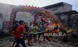 Latihan Liong dan Barongsai diikuti warga sekitar untuk persiapan Tahun Baru Imlek..