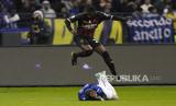 Pemain AC Milan Fikayo Tomori melompati pemain Inter Milan Robin Gosens dalam final Piala Super Italia antara AC Milan dan Inter Milan di Stadion Universitas King Saud, di Riyadh, Arab Saudi, Kamis (19/1/2023)dini hari WIB. Inter Milan menang 3-0. (FOTO : (Foto AP/Hussein Malla))