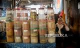 Pedagang jamu menunggu pembeli di kawasan Pasar Jatinegara, Jakarta Timur, Kamis (19/1/2023). (FOTO : Republika/Thoudy Badai)