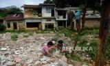 REPUBLIKA.CO.ID,JAKARTA -- Suasana di kawasan lahan yang terdampak untuk proyek normalisasi kali Ciliwung, Rawajati, Jakarta, Kamis (19/1/2023).