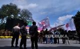 Aksi unjuk rasa dari Serikat Mahasiswa Indonesia (SMI) di depan kampus Universitas Negeri Yogyakarta (UNY), Yogyakarta, Kamis (19/1/2023). Pada aksi ini mereka menuntut perbaikan sistem uang kuliah tunggal (UKT) di UNY. Aksi solidaritas mahasiswa ini digelar buntut dari meninggalnya mahasiswa UNY, Nur Riska yang berjuang meminta keringanan UKT hingga akhir hayat. (FOTO : Republika/Wihdan Hidayat)