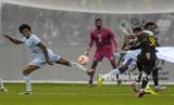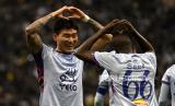Pemain Riyadh XI Jang Hyun-Soo (Kiri) bersama Saud Abdulhamid melakukan selebrasi setelah mencetak gol 3-3 di Riyadh, Arab Saudi, Jumat, (20/1/2023)dini hari. EPA-EFE/STR (FOTO : EPA-EFE/STR)