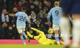 Riyad Mahrez mencetak gol 4-2 pada pertandingan sepak bola Liga Premier Inggris antara Manchester City dan Tottenham Hotspur di Manchester, Inggris, Jumat, (20/1/2023) dini hari. (FOTO : EPA-EFE/Andrew Yates )