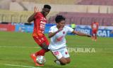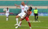 Sayap kananBali United FC Privat berduel dengan sayap kanan PSM Makassar Ananda Raehan pada lanjutan BRI Liga 1 di Stadion Sultan Agung, Yogyakarta, Jumat (20/1/2023). Hasil pertandingan ini Bali United FC harus puas berbagi poin dengan PSM Makassar usai bermain imbang 2-2. Gol Bali United FC dicetak oleh Eber Bessa dan Spasojevic, sedangkan gol PSM Makassar dicetak oleh Kenzo Nambu dan Yuran Fernandes. (FOTO : Republika/Wihdan Hidayat)