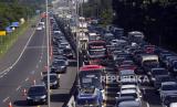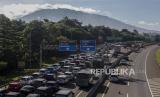 REPUBLIKA.CO.ID, BOGOR -- Sejumlah kendaraan wisatawan antre memasuki jalur wisata Puncak, Gadog, Ciawi, Kabupaten Bogor, Jawa Barat, Sabtu (21/1/2023).