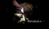 Petugas Yayasan Orangutan Sumatera Lestari - Orangutan Informatio Centre (YOSL-OIC) menyiapkan obat-obatan saat melakukan evakuasi penyelamatan orangutan sumatra (Pongo abelii) di Desa Kuta Kendit Liang Melas, Kabupaten Karo, Sumatera Utara, Sabtu (21/1/2023). Petugas Yayasan Orangutan Sumatera Lestari - Orangutan Informatio Centre (YOSL-OIC) mengevakuasi orangutan berjenis kelamin jantan yang ditangkap warga setempat saat masuk ke perkebunan milik warga. (FOTO : EPA-EFE/DEDI SINUHAJI)