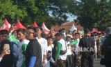 Ribuan warga Nahdliyin mengikuti Jalan Sehat Menuju 1 Abad NU di Pura Mangkunegaran, Surakarta, Jawa Tengah, Ahad (22/1/2023). (FOTO : Republika/Wihdan Hidayat)