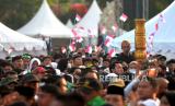 Warga Nahdliyin menunggu Presiden Joko Widodo saat Jalan Sehat Menuju 1 Abad NU di Pura Mangkunegaran, Surakarta, Jawa Tengah, Ahad (22/1/2023). (FOTO : Republika/Wihdan Hidayat)