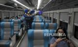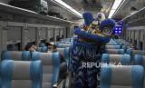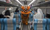 Penari barongsai berada di dalam gerbong kereta api di Stasiun Bandung, Kota Bandung, Ahad (22/1/2023). PT Kereta Api Indonesia Daop 2 Bandung mengadakan pertunjukan barongsai dalam rangka memeriahkan perayaan Tahun Baru Imlek 2574/2023 yang bertepatan dengan Tahun Kelinci Air. (FOTO : ABDAN SYAKURA/REPUBLIKA)