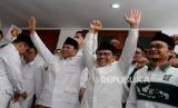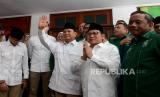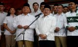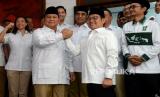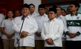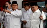 Ketua Umum Partai Gerindra Prabowo Subianto dan Ketua Umum Partai Kebangkitan Bangsa (PKB) Abdul Muhaimin Iskandar bersiap memberikan keterangan saat peresmian Sekretatiat Bersama (Sekber) di kawasan Menteng, Jakarta, Senin (23/1/2023). Sekber tersebut merupakan bentuk optimisme kedua partai dalam menghadapi pemilihan umum (Pemilu) 2024. Selain itu juga wujud implementasi dari kerjasama politik yang sudah diputuskan dan disepakati. (FOTO : Republika/Prayogi.)