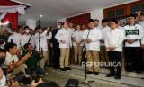 REPUBLIKA.CO.ID,JAKARTA -- Ketua Umum Partai Gerindra Prabowo Subianto berjabat tangan dengan Ketua Umum Partai Kebangkitan Bangsa (PKB) Abdul Muhaimin Iskandar saat peresmian Sekretatiat Bersama (Sekber) di kawasan Menteng, Jakarta, Senin (23/1/2023).
