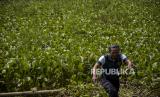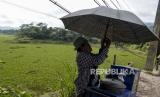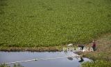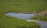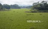 Kondisi Sungai Cipatik yang dipenuhi tanaman eceng gondok di Sasak Bubur, Cihampelas, Kabupaten Bandung Barat, Senin (23/1/2023). Warga setempat mengeluhkan banyaknya tanaman eceng gondok yang menutupi permukaan sungai tersebut karena mengganggu aktivitas perahu, pencari ikan serta keramba yang menjadi mata pencaharian sebagian warga di kawasan tersebut. (FOTO : ABDAN SYAKURA/REPUBLIKA)