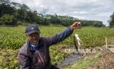 Warga menunjukkan ikan di Sungai Cipatik yang dipenuhi tanaman eceng gondok di Sasak Bubur, Cihampelas, Kabupaten Bandung Barat, Senin (23/1/2023). Warga setempat mengeluhkan banyaknya tanaman eceng gondok yang menutupi permukaan sungai tersebut karena mengganggu aktivitas perahu, pencari ikan serta keramba yang menjadi mata pencaharian sebagian warga di kawasan tersebut. (FOTO : ABDAN SYAKURA/REPUBLIKA)