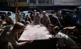 Petugas Satpol PP mengangkut barang PKL di kawasan Pasar Kebon Kembang, Kota Bogor, Jawa Barat, Selasa (24/1/2023). Pembongkaran ratusan lapak tersebut untuk mensterilkan ruas Jalan Sawojajar, Dewi Sartika, MA Salmun dan Nyi Raja Permas dari keberadaan PKL yang mengganggu kenyamanan dan ketertiban umum. (FOTO : Republika/Putra M. Akbar)