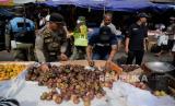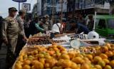 Petugas Satpol PP saat melakukan penertiban PKL di kawasan Pasar Kebon Kembang, Kota Bogor, Jawa Barat, Selasa (24/1/2023). Pembongkaran ratusan lapak tersebut untuk mensterilkan ruas Jalan Sawojajar, Dewi Sartika, MA Salmun dan Nyi Raja Permas dari keberadaan PKL yang mengganggu kenyamanan dan ketertiban umum. (FOTO : Republika/Putra M. Akbar)