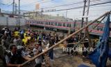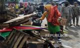Pedagang mencari barang berharga saat penertiban PKL di kawasan Pasar Kebon Kembang, Kota Bogor, Jawa Barat, Selasa (24/1/2023). Pembongkaran ratusan lapak tersebut untuk mensterilkan ruas Jalan Sawojajar, Dewi Sartika, MA Salmun dan Nyi Raja Permas dari keberadaan PKL yang mengganggu kenyamanan dan ketertiban umum. (FOTO : Republika/Putra M. Akbar)