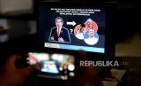 Jurnalis mengambil gambar ketika penyampaian hasil survei nasional Lingkaran Survei Indonesia (LSI) Denny JA bertajuk Melanjutkan Jokowi Atau Isu Perubahan 2023-2024:Panen Raya Politik Pemilu di Jakarta, Selasa (24/1/2023). (FOTO : Republika/Prayogi.)