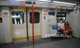 Penumpang ibu dan anak berada di Rangkaian kereta LRT di Stasiun Pegangsaan Dua Jakarta, Selasa (24/1/2023tu). LRT Jakarta melalui campaign #NyamankanJakarta mewujudkan pelayanan transportasi publik yang prima dengan menumbuhkan rasa aman, nyaman dan ramah lingkungan sehingga terciptanya transportasi publik yang ramah anak, ramah perempuan serta ramah disabilitas. Stasiun LRT Jakarta juga dilengkapi dengan berbagai fasilitas ramah difabel, ramah anak dan perempuan antara lain Toilet khusus Disabilitas, Pos Kesehatan dan Nursery Room, Pos Sahabat Perempuan dan Anak (SAPA), kursi roda yang disertai dengan ramp di setiap stasiun. (FOTO : Republika/Prayogi.)