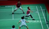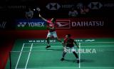 REPUBLIKA.CO.ID, SENAYAN  --  Pertandingan Ganda Putra Mohammad Ahsan dan Hendra Setiawan saat bertanding melawan ganda putra Jepang Akira Koga dan Taichi Saito pada babak kualifikasi Daihatsu Indonesia Masters 2023 di Istora Gelora Bung Karno, Senayan, Jakarta, Selasa (24/1/2023).