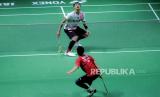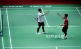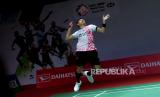 REPUBLIKA.CO.ID, SENAYAN -- Pertandingan tunggal putra Indonesia Jonatan Christie melawan pebulutangkis tunggal putra Irlandia Nhat Nguyen usai berhasil menang pada babak kualifikasi Daihatsu Indonesia Masters 2023 di Istora Gelora Bung Karno, Senayan, Jakarta, Rabu (25/1/2023).