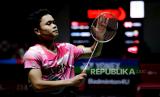 REPUBLIKA.CO.ID, SENAYAN -- Tunggal putra Indonesia Anthony Sinisuka Ginting lawan pebulutangkis Hongkong Lee Cheuk Yiu pada babak kualifikasi Daihatsu Indonesia Masters 2023 di Istora Gelora Bung Karno, Senayan, Jakarta, Rabu (25/1/2023). Ginting berhasil lolos ke babak 16 besar usai mengalahkan tunggal putra Hongkong dengan skor 21-10, 21-12.