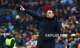 Pelatih kepala Barcelona Xavi Hernandez memberikan instruksi pada pertandingan sepak bola Copa del Rey Spanyol antara Barcelona dan Real Sociedad di stadion Camp Nou, di Barcelona, ??Spanyol, Kamis (26/1/2023) dini hari WIB. (FOTO : AP Photo/Joan Monfort)