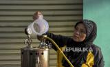 Warga memasukkan air ke dalam mesin setrika di Coworking Space Bandung, Braga, Kecamatan Sumur Bandung, Kota Bandung, Kamis (26/1/2023). Pemerintah Kota Bandung berencana terus menambah dan melakukan aktivasi Coworking Space (ruang kerja bersama) di 30 kecamatan sebagai wadah pengembangan kemandirian masyarakat serta peningkatan keterampilan pelaku ekonomi kreatif. (FOTO : ABDAN SYAKURA/REPUBLIKA)