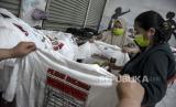 REPUBLIKA.CO.ID,BANDUNG -- Warga menyelesaikan pesanan kaus di Coworking Space Bandung, Braga, Kecamatan Sumur Bandung, Kota Bandung, Kamis (26/1/2023).