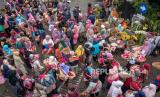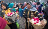Sejumlah petani menawarkan bunga mawar tabur kepada tengkulak bunga di Pasar Bunga Bandungan, Kabupaten Semarang, Jawa Tengah, Kamis (26/1/2023). Menurut tengkulak di pasar bunga tersebut, harga bunga mawar tabur merah maupun putih di tingkat petani setempat melonjak dari sekitar Rp15.000 - Rp40.000 per keranjang (ukuran 1-3 kilogram) menjadi sekitar Rp100.000 - Rp350.000 per keranjang menyusul permintaan bunga yang meningkat pada bulan Rajab penanggalan Hijriyah sebagai sarana berziarah kubur maupun tradisi nyadran atau bersih desa di berbagai wilayah di Jawa Tengah. ANTARA FOTO/Aji Styawan/rwa. (FOTO : Antara/Aji Styawan)