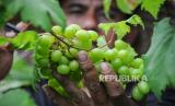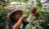 REPUBLIKA.CO.ID,BANDUNG -- Pembudidaya anggur Aminudin Saleh merawat tanaman anggur di Mekarwangi, Bandung, Jawa Barat, Kamis (26/1/2023).