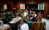 Suasana pertemuan petinggi partai Gerindra-PKB-Nasdem di di Sekretariat Bersama Gerindra-PKB, Jakarta, Kamis (26/1/2023). (FOTO : Republika/Prayogi.)