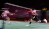 REPUBLIKA.CO.ID, SENAYAN -- Pertandingan bulu tangkis tunggal putra Indonesia Jonatan Christie melawan tunggal putra India Lakshya Sen dalam babak perempat final Daihatsu Indonesia Master 2023 di Istora Senayan, Jumat (27/1/2023).