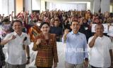 REPUBLIKA.CO.ID, JAKARTA -- Kepala Eksekutif Pengawas Perilaku Pelaku Usaha Jasa Keuangan, Edukasi, dan Pelindungan Konsumen Otoritas Jasa Keuangan (OJK) Friderica Widyasari Dewi (tengah) memberikan materi edukasi keuangan bagi pelaku UMKM dan ibu rumah tangga di Rusunawa Marunda, Jakarta Utara, Jumat (27/1/2023).