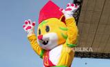 Warga dengan memakai kostum maskot PON XXI Aceh-Sumut 2024 bernama Matra (Harimau Sumatera) melambaikan tangan saat acara peluncuran PON XXI Aceh-Sumut 2024 di Lapangan Astaka Pancing, Kota Medan, Sumatera Utara, Ahad (29/1/2023). Peluncuran logo, maskot Matra (Harimau Sumatera) dan tagline Bersatu Kita Juara untuk PON XXI Aceh-Sumut 2024 tersebut menjadi tanda dimulainya titik awal pelaksanaan agenda olahraga empat tahunan itu. (FOTO : ANTARA FOTO/Yudi)