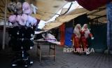 Pedagang menata barang dagangannya di lokasi binaan Kota Intan, Jakarta, Senin (30/1/2023). Lokasi binaan yang disediakan oleh Pemerintah Provinsi DKI Jakarta untuk menampung PKL kawasan Kota Tua tersebut sepi dari pedagang maupun pengunjung. Pemerintah Kota Jakarta Barat mencatat baru 40 persen PKL yang mendaftarkan diri dan berencana melakukan jemput bola ke para PKL Kota Tua untuk menggenjot keterisian lokbin tersebut. (FOTO : Republika/Putra M. Akbar)