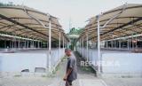 Pedagang berjalan di dekat kios yang masih kosong di lokasi binaan Kota Intan, Jakarta, Senin (30/1/2023). Lokasi binaan yang disediakan oleh Pemerintah Provinsi DKI Jakarta untuk menampung PKL kawasan Kota Tua tersebut sepi dari pedagang maupun pengunjung. Pemerintah Kota Jakarta Barat mencatat baru 40 persen PKL yang mendaftarkan diri dan berencana melakukan jemput bola ke para PKL Kota Tua untuk menggenjot keterisian lokbin tersebut. (FOTO : Republika/Putra M. Akbar)
