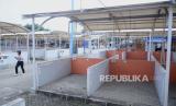 Sejumlah kios yang masih kosong di lokasi binaan Kota Intan, Jakarta, Senin (30/1/2023). Lokasi binaan yang disediakan oleh Pemerintah Provinsi DKI Jakarta untuk menampung PKL kawasan Kota Tua tersebut sepi dari pedagang maupun pengunjung. Pemerintah Kota Jakarta Barat mencatat baru 40 persen PKL yang mendaftarkan diri dan berencana melakukan jemput bola ke para PKL Kota Tua untuk menggenjot keterisian lokbin tersebut. (FOTO : Republika/Putra M. Akbar)