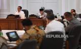 REPUBLIKA.CO.ID, JAKARTA -- Presiden Joko Widodo (kiri) didampingi Wakil Presiden Ma'ruf Amin (tengah) memimpin rapat terbatas di Kantor Presiden, Jakarta, Senin (30/1/2023).