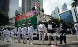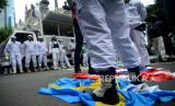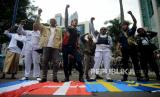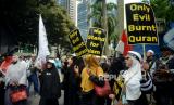REPUBLIKA.CO.ID,JAKARTA -- Umat muslim melakukan Aksi Bela Alquran di Depan Kedubes Swedia, Kuningan, Jakarta, Senin (30/1/2023).