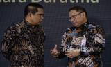 Direktur Sales & Distribution Bank Syariah Indonesia Anton Sukarna (kiri) bersama Direktur Eksekutif BSI Maslahat Sukoriyanto saat Grand Launching dan Public Expose BSI Maslahat di Jakarta, Senin (30/1/2023).  (FOTO : Republika/Edwin Dwi Putranto)