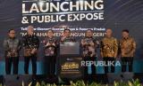 Direktur Sales & Distribution Bank Syariah Indonesia Anton Sukarna (tengah) bersama Ketua Pengurus BSI Maslahat Riko Wardhana (ketiga kiri), Direktur Eksekutif BSI Maslahat Sukoriyanto (ketiga kanan) dan Komisaris Utama BSI Adiwarman Karim (kedua kiri) saat Grand Launching dan Public Expose BSI Maslahat di Jakarta, Senin (30/1/2023).  (FOTO : Republika/Edwin Dwi Putranto)
