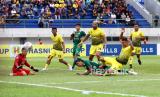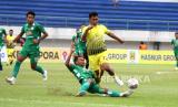 Pertandingan babak pertama Barito Putera melawan PSS Sleman dengan skor sementara 0-1.