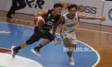 REPUBLIKA.CO.ID,MALANG -- Pebasket Satria Muda Pertamina Jakarta Hardianus (kanan) berusaha menghentikan laju pebasket Bali United Basketball Abraham Wenas (kiri) dalam pertandingan Indonesia Basketball League (IBL) 2023 Seri II di GOR Big Arema Bimasakti, Malang, Jawa Timur, Selasa (31/1/2023).