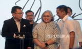 Presiden Direktur Prudential Syariah Omar Sjawaldy Anwar (kiri), Presiden Direktur Prudential Indonesia Michellina L. Triwardhany (tengah) dan Direktur Transformasi dan Digital Bio Farma Soleh Ayubi (kanan) saat Penandatanganan MoU Kerja Sama di Jakarta, Selasa (31/1/2023). Kolaborasi antara industri asuransi jiwa dan industri farmasi ini bertujuan untuk mendukung kemajuan sektor kesehatan di Indonesia. Kemitraan ini juga merupakan salah satu perwujudan komitmen Prudential Indonesia dan Prudential Syariah dalam mewujudkan masyarakat Indonesia yang lebih sehat dan sejahtera sekaligus mendukung peningkatan ekosistem digital di bidang kesehatan. (FOTO : Republika/Prayogi.)